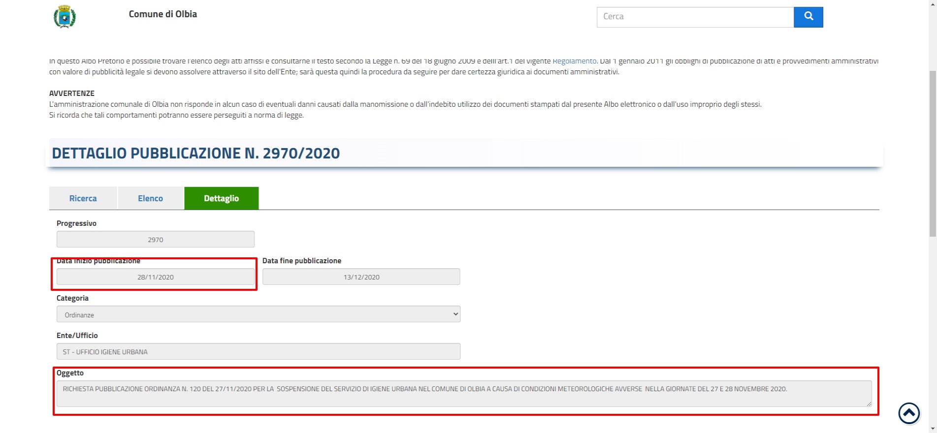 Comune di olbia albo pretorio.